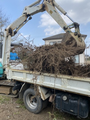 宅内整地、伐採伐根をおこないました。