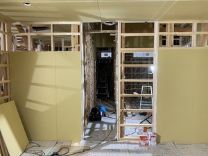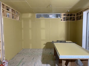S様邸でも、1階の寝室に石膏ボードを施工しました。