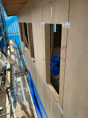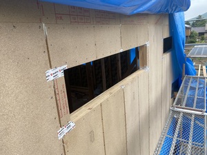 東面にてパーティクルボード貼り施工&サッシ周り