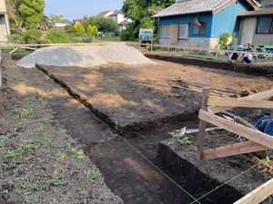 本日は、つくば市I様邸にて新築工事の基礎工事