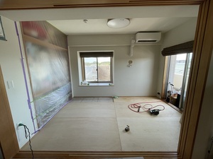 本日は、つくば市T様邸にてリフォーム工事のフローリング貼りを