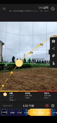 冬場の太陽の位置を確認しつつ周辺環境の影響を受けるか否かを把握します。
