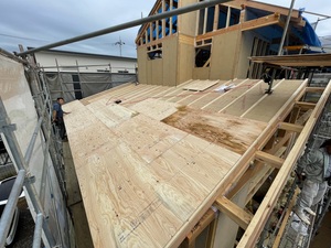 つくば市Y様邸 新築工事 大工工事 屋根合板貼りをおこないました