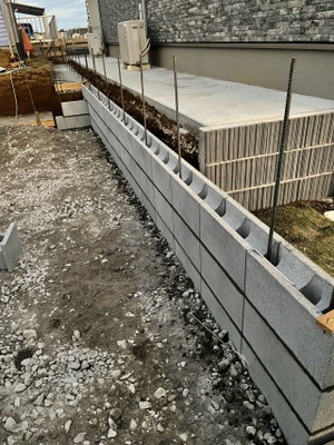 - 04月04日 つくば市S様邸 新築工事 外構工事 ブロック積みをおこないました