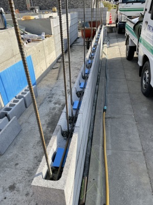 - 04月04日 つくば市S様邸 新築工事 外構工事 ブロック積みをおこないました