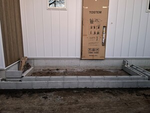 つくば市I様邸 新築工事 外構工事 玄関前タイル下地作成をおこないました