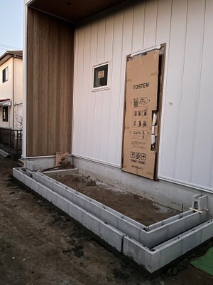 - 04月04日 つくば市S様邸 新築工事 外構工事 ブロック積みをおこないました