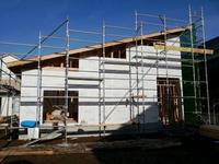 N様邸は上棟から5日目に入り、いよいよ外壁工事が進んでいます。