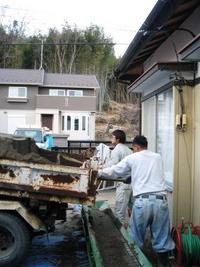 母屋等の既存の建物があり、ダンプが入って行くことができないため