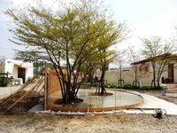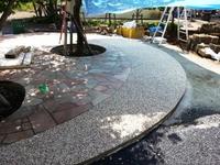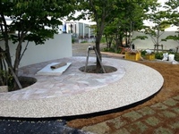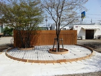 既存の樹木を残してアクセントになるように円形のステージを作りました。