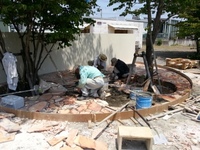 土間コンクリートを打設後、型枠を外して、背後のコンクリートの壁を作ります。