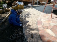 石材を樹脂で固めるもので、石材間から水が下へ浸透するので