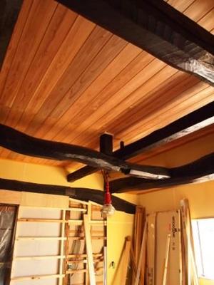 梁は磨きをかけてから、少し濃いめの色で仕上げてます。