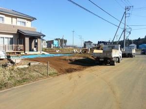 この後に砕石を入れて転圧して固めて、駐車場部分は一旦終わり。