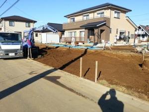 まずは砕石を敷く高さまで既存の土を掘ります。