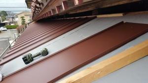 写真右:屋根仕上げはガルバリウム鋼板の立平葺き。