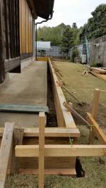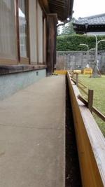 ↑今ある犬走りをそっくり覆うように新規の犬走りを作ります。打設厚は10センチ。