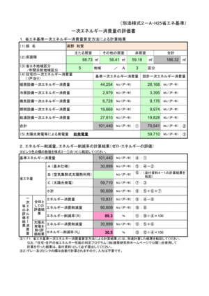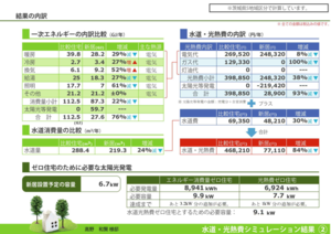 右下の画像は各エネルギー消費量毎に表にしたもので、ゼロエネルギー住宅の補助金申請時に添付する書類の1つです。