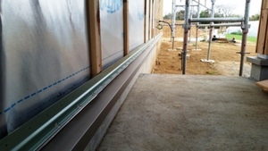 まずは外壁を張る前の工事。。土台水切りの取付状況です。