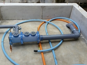 『浴室』『洗面化粧台』『洗濯機』からの排水を左上の写真の青い部分に集めて、