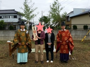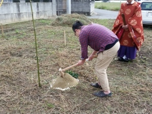 写真右:お施主さんに行ってもらった穿初(うがちぞめ)の儀