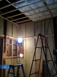 床下地造りと壁の不陸調整も終わって今日は天井下地作成です