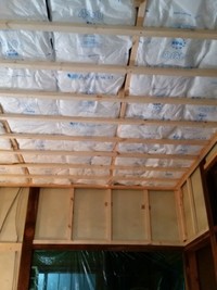 断熱材を入れ終わったら天井ボードを貼って下地完成です!