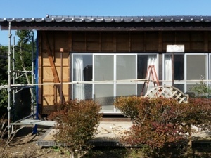 この後は外壁の不陸調整をしながら、構造用合板で耐震補強をしていきます。